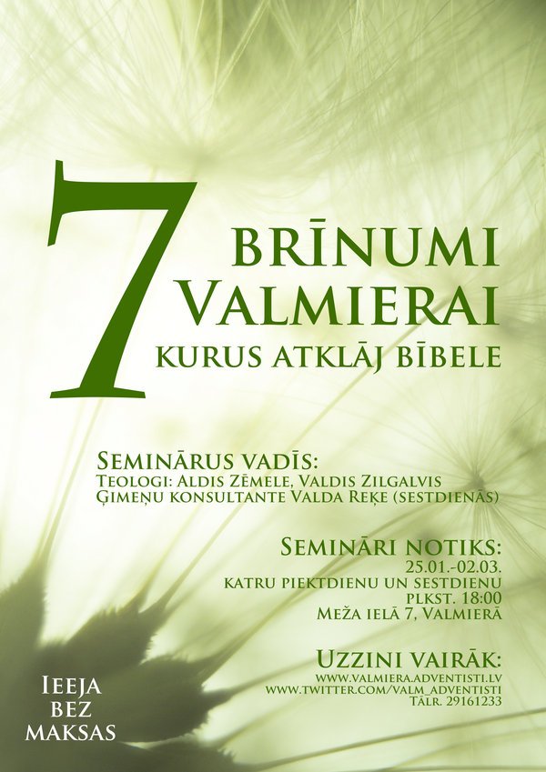 „7 brīnumi Valmierai” – garīgu semināru cikls, kurā ikviens var gūt jaunas atziņas par Bībeli – Dieva vārdu.