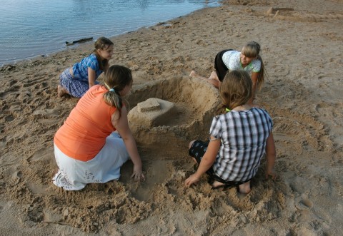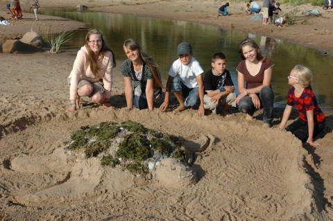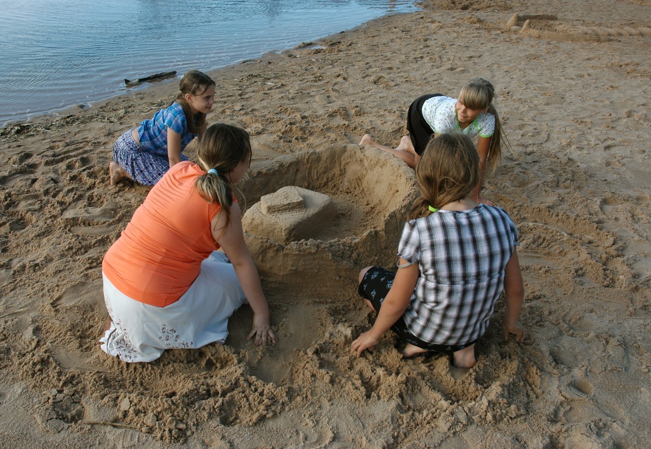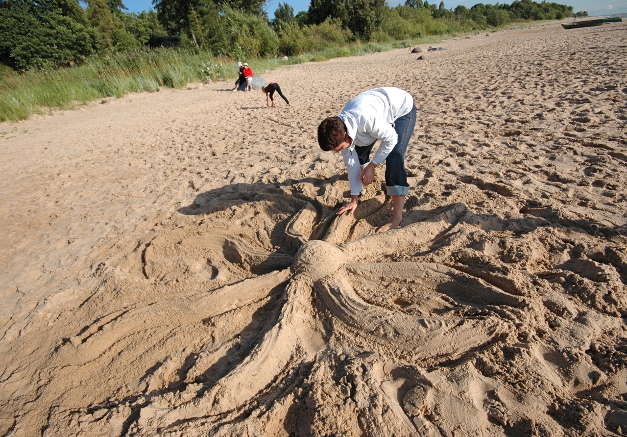 sviestmaižu piramīdas, smilšu Bābele, nāra un dažādi zvēri. Bet pats